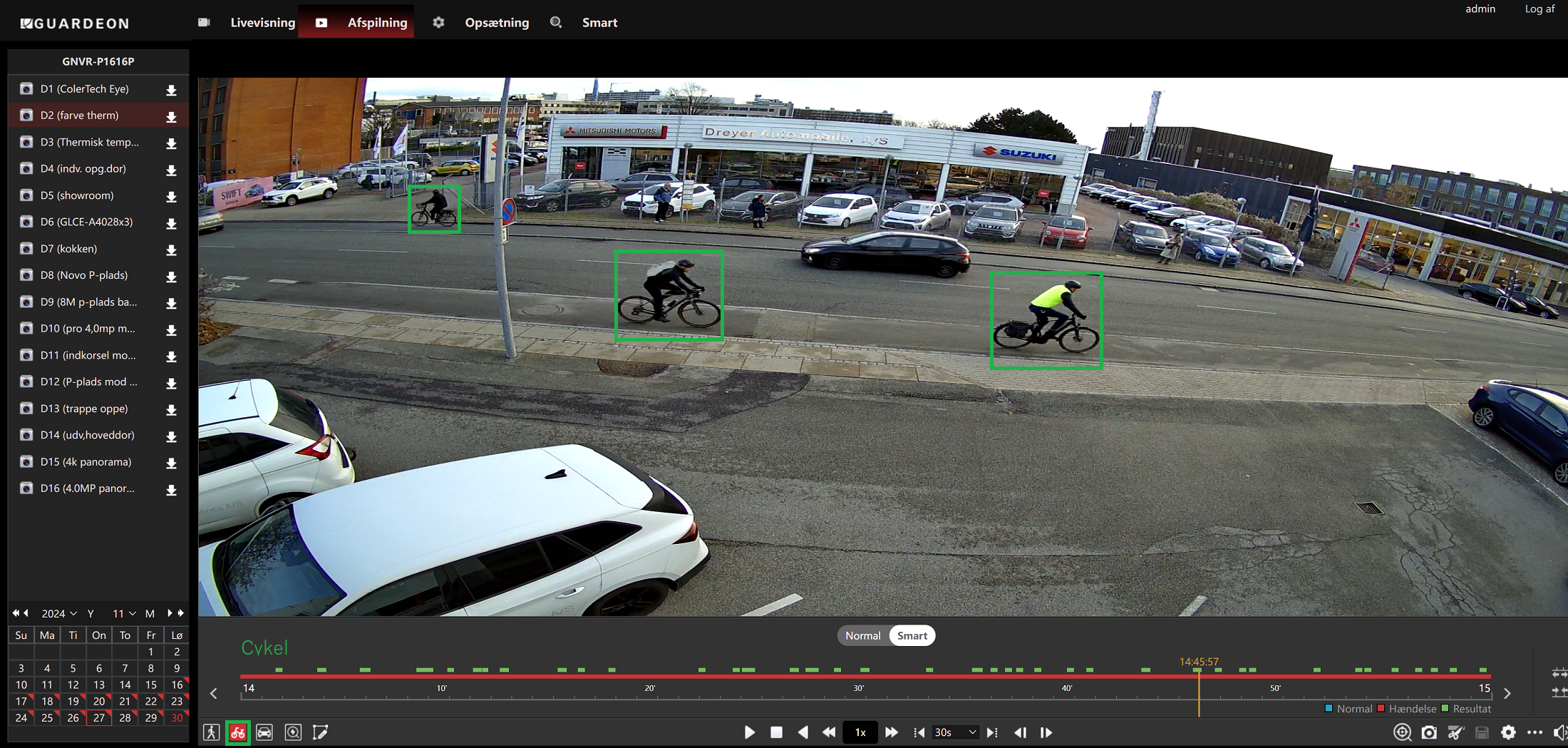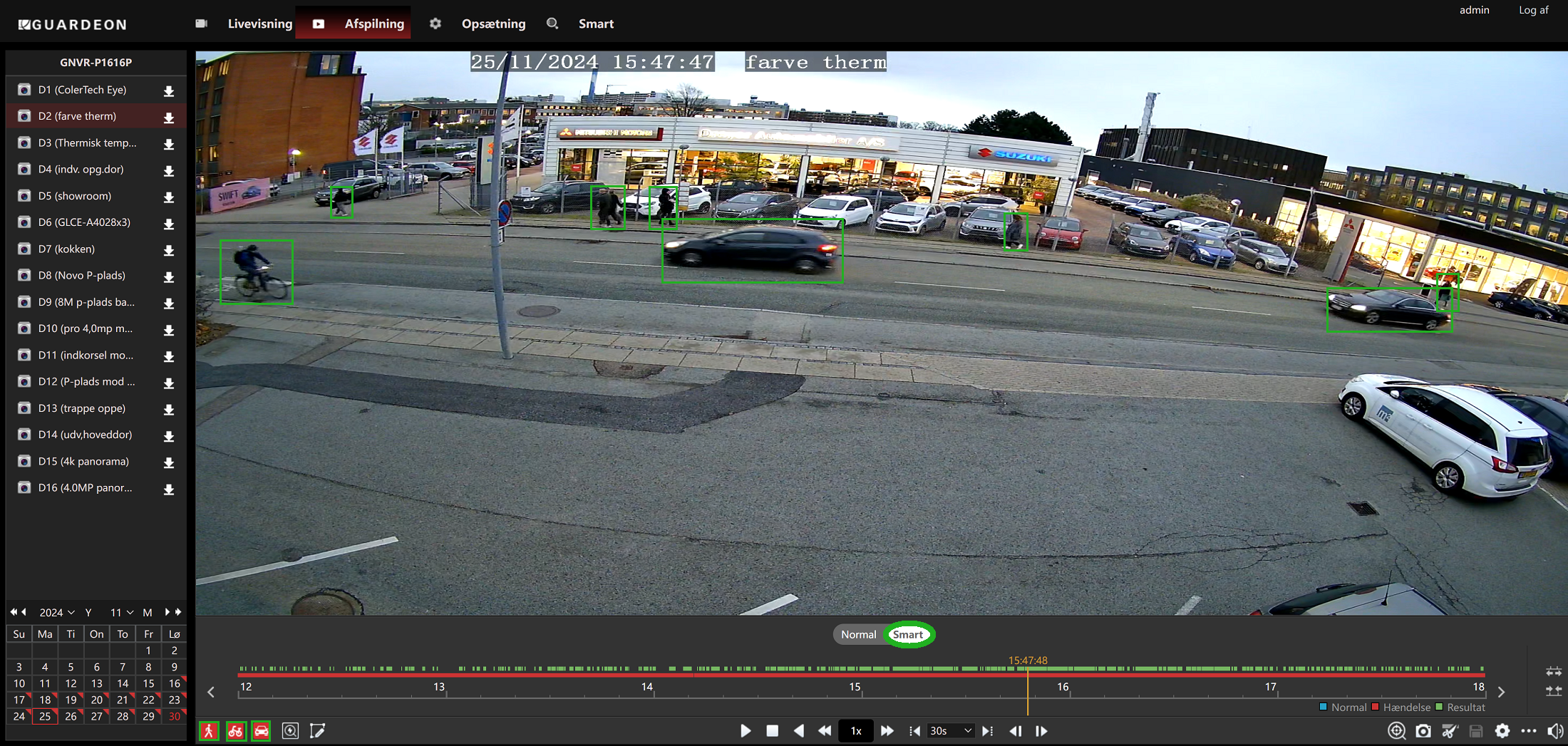GNVR-E404P 4 kanal NVR med POE Forside » Video server » GNVR NDAA serie (nyhed) Varenr.: 34100Login for pris Antal Køb På lager NDAA ECO (entry level) NVR serie Kraftig 4 kanal AI NVR med 4 POE Optage op til 16 MP kamera opløsning Indgående båndbrede 80Mbps Udgående båndbrede 64Mbps NDAA kompatibelt NVR Tilslut 3 part kamera med ONVIF og RSTP POE til 4 kamera Max 30W pr. port ( Max 50W TOTAL) Nem Cloud opdatering (OTA) GNVR-E404P lille 4 kanal NVR med 4 POE Plads til 1 SATA Harddisk max 8TB ONVIF profiler : Profil S, Profil G, Profil T, RSTP, Guardeon Videoformat : Ultra256, H.256. H.264 Smart AI fra kamera: Ultra motion, VMD. Motion blur, Defocus Detection, Scene Change Detection, Smart AI fra kamera:Object Left Behind, Object Removed, Auto Tracking Smart AI: line cross, intrusion det, enter/ leave area, People counting, crowd monitoring, Lydløs server (der er ingen blæser i server) HDMI monitor udgang: 4K (3840x2160)@30 billeder VGA monitor udgang :1920x1080p@60 billeder 2 stk. USB porte Audio in og udgang 1 stk. LAN 10M / 100M / 1000M RJ45 netværksport. Mål: 260mm × 222mm × 47mm Materiale : metal Farve sort *NVR leveres uden harddisk som er et tilkøb hvad er NDAA ? Produkter som er godkendt i forhold til NDAA (National Defense Authorization Act). Betyder at udstyret må indgå i installationer med højsikkerhed og kritiske infrastruktur, samt produktet ikke er produceret af bandlyste virksomheder. Læs mere Datablad Måske er du også interesseret i følgende produkter GNVR-E808P 8 kanal NVR med POE Login for pris GNVR-P1616P PRO AI NVR 16 kanal med POE Login for pris GNVR-P1602L PRO AI NVR 16 kanal Login for pris GNVR-P3202L PRO AI NVR 32 kanal Login for pris GuardEye IOS app til Guardeon video Login for pris GuardEye ANDROID app til Guardeon video Login for pris