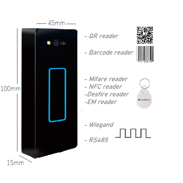 XS-100PQR MINI mullion multilæser med QR-, stregkode læser Forside » Adgangskontrol » ADK Kode/Kort læser » Mullion slimline tastatur / læser Varenr.: 74560Login for pris Antal Køb Ikke på lager Send mail når varen kommer på lager igen XS-100PQR MINI mullion multilæser frigives Q4-2024 Elegant MINI smalprofil kort og QR læser med sort glasfront Indbygget MF, EM, NFC, DESFire læser Indbygget kamera, led lys til QR / stregkoder læser Rød og grøn LED indikering Smalprofil (mullion) Dimensioner: 100x45x15 mm (HxBxD) Farveskift ved aktivering Specielt designet til smalle stolper, døre, alu. profildøre Wiegand slave kombi kode/læser/QR Wiegand 26-32-34 bit interface output RS485 interface output Indbygget berøringsfri MF (MIFARE) kortlæser Indbygget berøringsfri NFC kortlæser Indbygget berøringsfri EM (MARINE) kortlæser Indbygget berøringsfri Desfire kortlæser Indbygget QR & stregkode læser MIFARE, DESFIRE samt NFC - 13.56MHz læser EM - 125KHz læser Prox læseafstand op til 5 cm QR læseafstand op til 50 cm. Leveres med standard farve belysning (RØD hvile / GRØN aktiveret)* Ekstern LED kontrol indgang (baggrundsbelysning) Ekstern lydgiver kontrol indgang Forsyningsspænding: 12VDC / max. 60mA Læsetid: <100ms Installationsområde: -20° til +65°C Farve: sort ramme med sort metallic glas Elektronik er fuldt indstøbt Materiale: plastik ramme med hærdet glas Tilslutning: 10 cm kabel med aftageligt molex stik Universelt tastatur som passer til stort set til alle adgangskontrol systemer med Wiegand interface. Kontakt os gerne for at høre om tastaturet passer til dit ADK system. * Kan på bestilling leveres med andre belysningsfarver som: Orange, mørk blå, pink, turkis, gul, violet, lys blå, isblå Læs mere datablad Måske er du også interesseret i følgende produkter XS-100P MINI mullion multilæser Login for pris XS-100KP MINI mullion kodetastatur & multilæser Login for pris XS-120KP mullion kodetastatur & multilæser Login for pris XS-120P mullion multilæser Login for pris iFLEX Micro ADK controller Login for pris