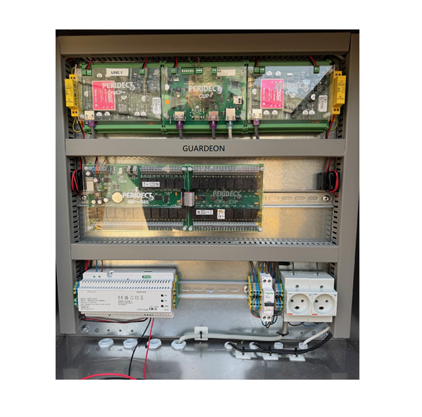 Peridect+ metalskab S (Standard model) Forside » Perimetersikring » Peridect+ perimeter Varenr.: 14540Login for pris Antal Køb Få på lager Metalskab i rustfrit standard metalskab til Peridect+ moduler Standard metalskab, passer til Peridect+ perimeter systemet 1 stk. Indbygget 12V / 5A PSU ( total 60W ) 1 stk. 17AH-12V backup batteri Dimensioner: 400 x 600 x 250 mm Data : 2 stk. 230V stikkontakter ( til pc / services ) 1 stk. 13A/230V 1 polet afbryder 1 stk. overspændingsbeskyttelse/ LYN 230V DIN 2 stk. Line DLAH-48D3 DIN peridect+ bus beskytter 1 stk. 230V Terminaler 3 stk. DIN skinner 1 stk. kanal til kabler 1 stk. Overvåget kabinet med åbningskontakt Rustfrit metal kabinet med lås. Arbejdstemperatur: -30°C til 85°C 1 stk. PERIDECT+ holder, skabslås og stolpebeslag. Til sæt med modul 1 Plads til 2 stk. LCP+ moduler samt 1 stk. controller Produceret i Danmark Dette er en skaffe vare som bygges til hver order. Det viste billede af metalskabet kan variere Leveres uden LCP+ og CUP+. samt relæmoduler Sælges kun til certificeret Peridect+ installatør. Læs mere Download datablad Download manual Referenceliste Måske er du også interesseret i følgende produkter Peridect+ LCP+ line modul Login for pris Peridect+ IOP+ 16 relæ LAN/IP modul Login for pris Peridect+ IOP+ RS485 master 16 relæ modul Login for pris Peridect+ IO 16 ch. slave relæ modul Login for pris Peridect+ CUP+ modul (Controller) Login for pris