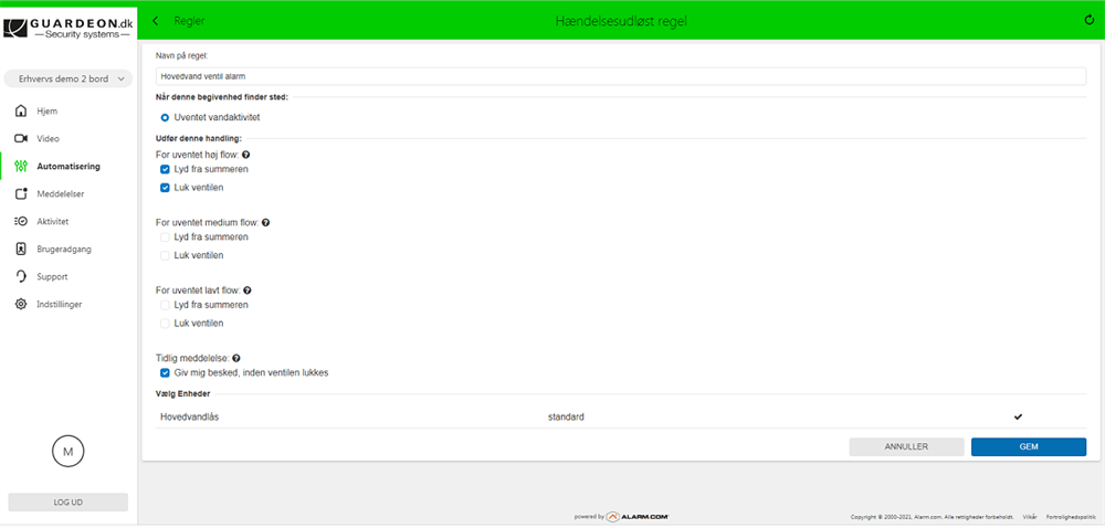 Vand ventil ADC-SWM150 - 1" rør Forside » Smart Z-Wave enheder » Trådløs Vandstyring Varenr.: 23015Login for pris Antal Køb Ikke på lager Send mail når varen kommer på lager igen Smart Vand ventil ADC-SWM150 1" Smart trådløs vand ventil ADC-SWM150 SKAFFEVARE Smart vand ventil Indbygget vandmåler Indbygget vandlækage måler (0.1 l/m) Indbygget temperatur måler Manual styring & indikator i separat boks til væg montage Indbygget lydgiver Mulighed for tilslutning af trådløs vandskadedetektor Betjening via app, alarm, portal og/eller smartregler m. bl.a. geofence Få rapporter af vand forbrug m.m. Trådløs styring via Z-wave 500 PLUS Gevind montage 1" Rør størrelse: 1" (42,4 mm) til erhverv / større bygninger Trådløs rækkevidde 30 meter Z-wave (frit sigt) IoT funktioner via smart cloud / app. Max. flow 40 liter pr. minut Må kun monteres indvendigt Kontrol enhed mål: 6.8 x 10.0 x 3.0 cm Vandventil boks mål: 21 x 15 x 10 cm Arbejdsområde -10°C to 85°C en skaffevare Køb og brug af vand ventil kræver det man er ADC partner og tilkoblet vores smart cloud løsning (ring og hør nærmere) Læs mere Demo film Download manual Manual Måske er du også interesseret i følgende produkter PG8985 - DSC trådløs vandskade detektor Login for pris IQ trådløs Vand ventil Login for pris